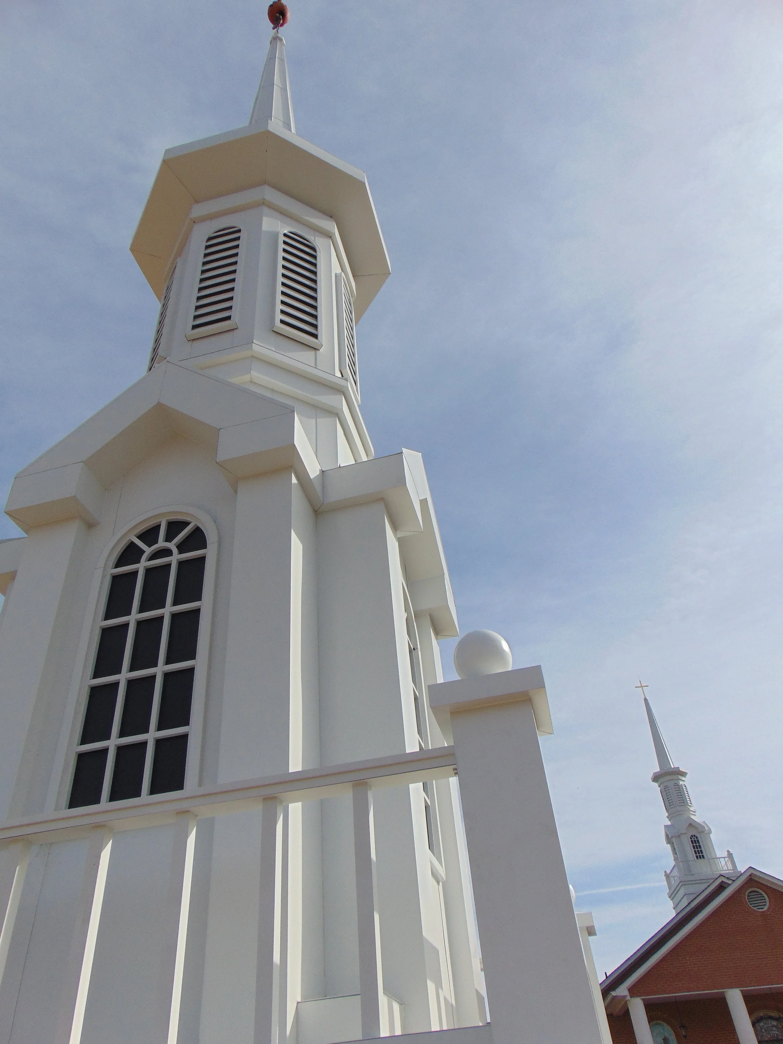 What a beautiful day! Jan 18, 2017 the crews began work around 8am. The day started out dreary and overcast, but the Lord smiled down on us with glorious sunshine and perfect temperatures. What a thrill to watch the crews working putting up both steeples up. The day culminated with Bro. Jerrell and Kenneth Wilkinson assisting in putting the cross on the steeple of the new building. Bro. Jerrell prayed over the building, asking God to bless the church and most importantly, thanking God for the mighty works He has done and continues to do at Tates Creek! To God Be The Glory!
